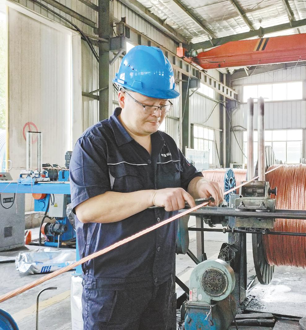 绞线工序是电线电缆生产过程中的关键工序,也是把控成本最重要的一道工序。拉丝绞线班组深知责任重大,在兢兢业业工作的同时,刻苦学习,努力钻研设备原理。利用工作之余研究设备及工艺改造,将传统电线电缆导体工艺改造创新为新型异形导体工艺,改造后产量提升10%,成本(铜、铝)节省15%,为公司创造不菲的经济价值。在公司工作15年来,郑江南与公司一起成长,公司年产值从10年前的1000万元发展到如今的30亿元左右,郑江南的贡献不可忽略。
