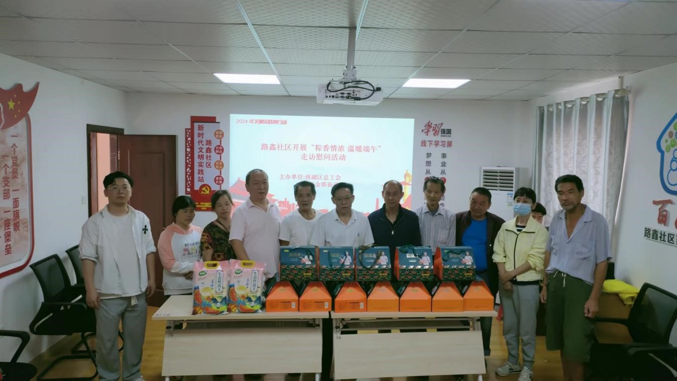 端午临中夏,时清日复长,又是一年端午时,为弘扬中华优秀传统文化,让困难职工感受到党和政府以及工会组织的温暖与关爱,进一步增强工会组织凝聚力和影响力,6月6日下午,西湖区总工会联合挂点社区——路鑫社区开展“端午安康”慰问活动。