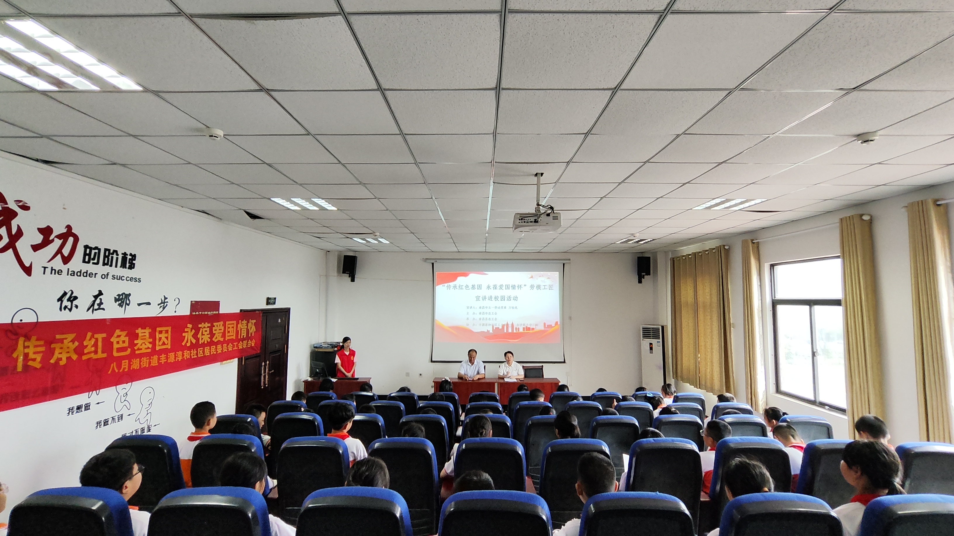 6月19日下午,全国五一劳动奖章、江西省劳模李怡丹、南昌市五一劳动奖章万怡兆到南昌县金山路小学二部开展“传承红色基因 永葆爱国情怀”劳模宣讲进校园活动。