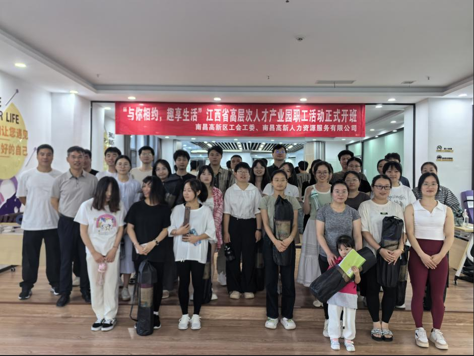 为丰富职工的业余文化生活,倡导阳光、乐观、健康向上的生活风尚,2024年7月4日南昌高新区工会工委在江西省高层次人才产业园举办了“与你相约 趣享生活”职工社群活动开班仪式,宣布常态性社群活动正式开启!本次活动共有30余名园区职工参加。
