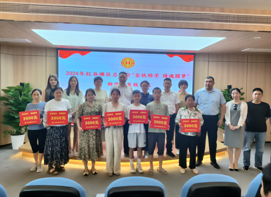 为持续巩固拓展困难职工解困脱困成果,帮助困难职工家庭解决子女就学方面的急难愁盼问题,8月29日上午,2024年红谷滩区总工会“金秋助学 铸魂圆梦”助学金发放仪式在区工人文化宫举行。