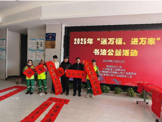 元旦期间,西湖区总工会联合九洲街道工会联合会在江西马力智能科技有限公司开展“送万福、进万家”书法公益活动。