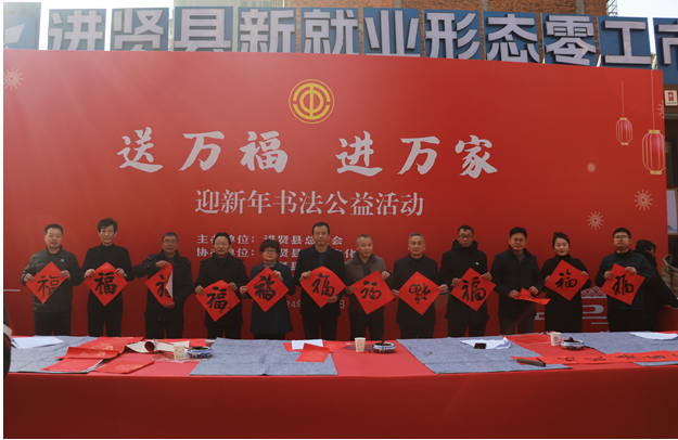 近日,县总工会组织书法家们在县农民工(散工)超市门口现场为职工群众书写、赠送春联和“福”字,向一线职工群众致以节日祝福。