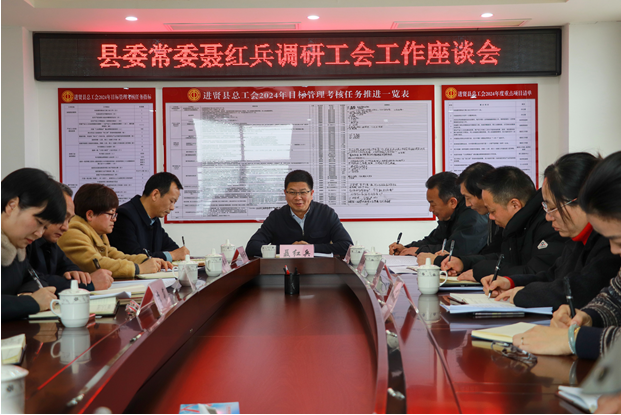 聂红兵听取了县总工会工作汇报,对县总工会工作给予充分肯定,并通过座谈向工会机关全体干部职工致以新春问候。他指出,工会在群团组织中力量最强、资源最多,工作成绩突出。