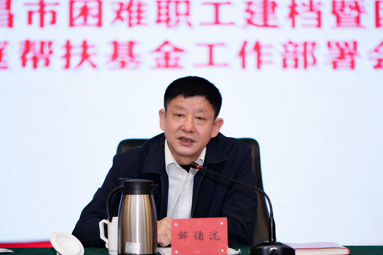 4月12日上午,南昌市总工会召开2023年全市困难职工建档暨困难职工帮扶基金工作部署会。市总工会党组成员、副主席、经费审查委员会主任邹循泷出席会议并讲话;各县(区)总工会,开发区、湾里管理局、市直机关工会工委,市直属基层工会,市总相关部门60余人参加会议。
