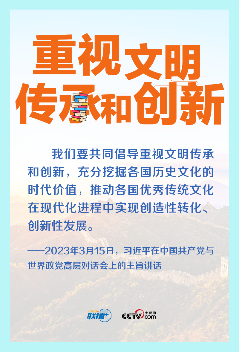 重视文明传承和创新,是文明交流互鉴的动力源泉。2023年年初,习近平总书记在中国共产党与世界政党高层对话会上首次提出全球文明倡议,这是继全球发展倡议、全球安全倡议后,新时代中国为国际社会提供的新的国际公共产品。