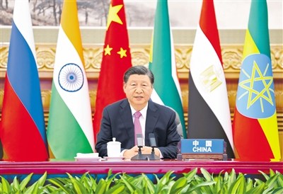习近平强调,金砖合作机制是新兴市场国家和发展中国家加强团结合作、维护共同利益的重要平台。今天,我们就巴以问题协调立场、采取行动,为扩员后的“大金砖合作”开了个好头。中方愿同其他成员一道,开创金砖合作新时代。
