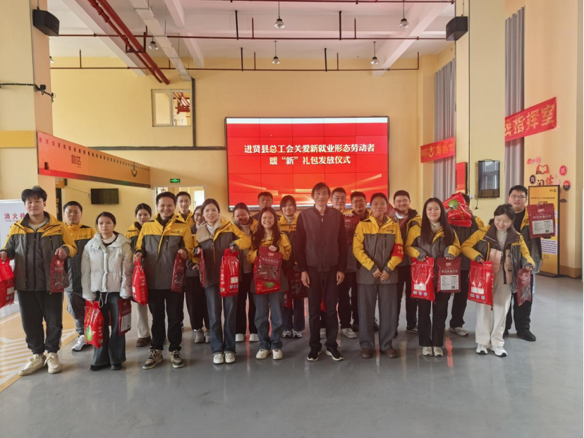 为进一步关心关爱新就业形态劳动者,1月12日上午,进贤县总工会一行赴江西桐韵速递有限公司,为新就业形态劳动者发放暖“新”礼包,将工会组织的关怀与温暖送到一线快递从业者手中。