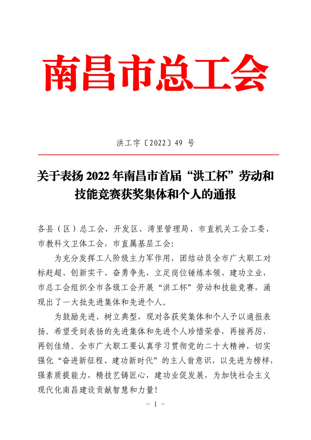 附件:字 49(南昌市总职工职业技能大赛获奖单位和个人的通报).pdf
