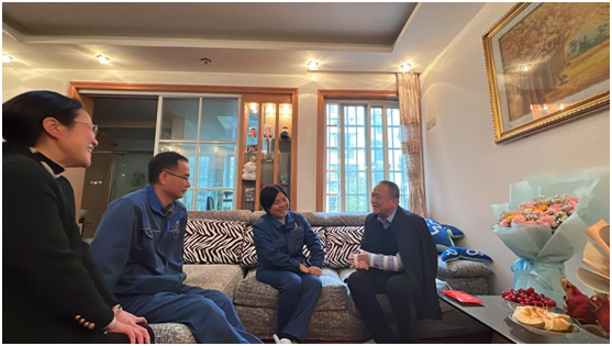 3月29日,方大特钢董事长居琪萍,党委副书记、纪委书记、工会主席胡建忠一行来到方大特钢生活区,看望慰问公司员工余芳的爱人——救人英雄忻军,并送上鲜花和慰问金。