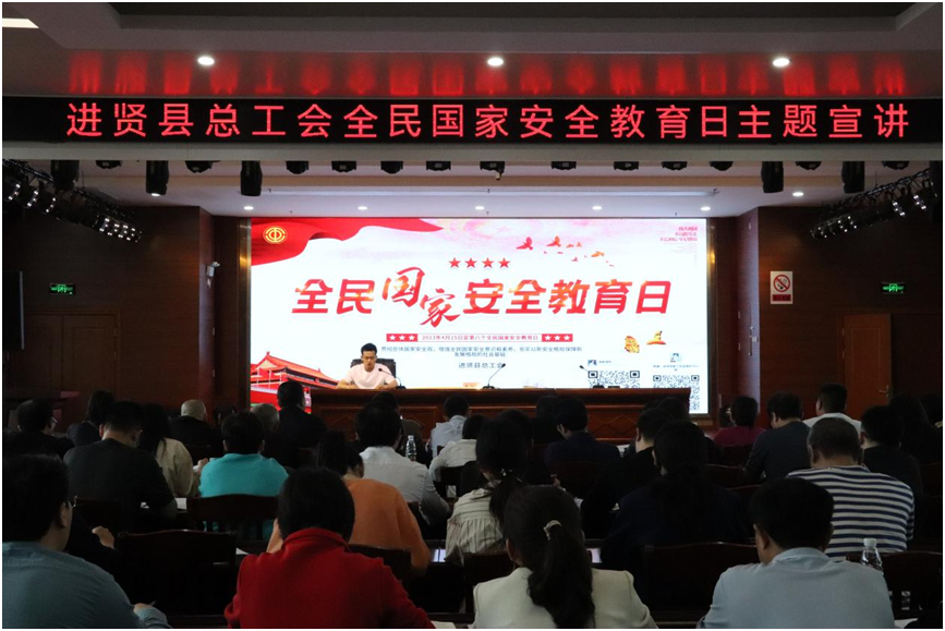 2023年4月15日是我国第8个全民国家安全教育日。4月19日上午,进贤县总工会在工人文化宫16楼会议室,组织开展4·15全民国家安全教育日宣讲活动。县人大常委会副主任、县总工会党组书记、主席邓必勇,县总工会领导班子成员及全县52个基层工会主席参加活动。