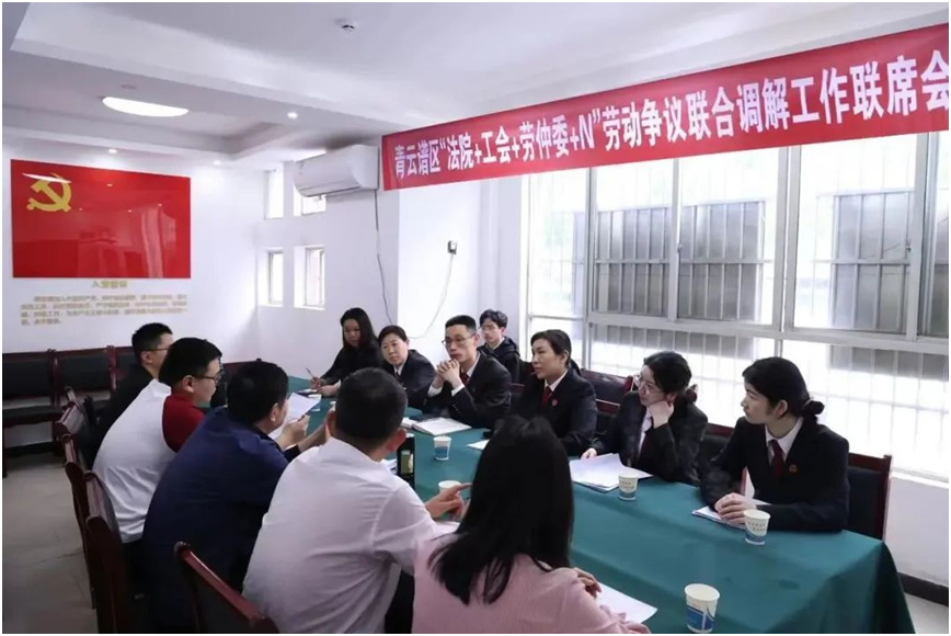 为进一步深化劳动争议案件联合调解工作,持续推进“工会+N”多元解纷,4月28日,青云谱区总工会联合区法院、区人社局、律所及李敏金牌调解室在岱山街道尧顺社区“解忧铺子”共同就近期典型劳动争议开展五方联合调解工作。