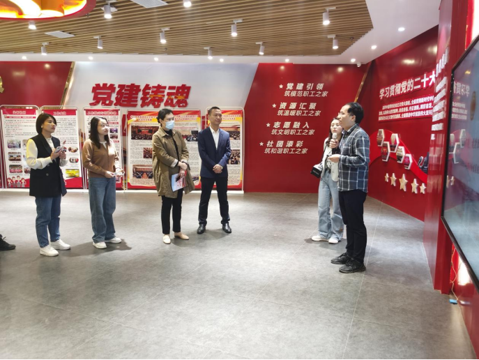 雷明一行先后参观丰源淳和社区职工之家和正荣大湖社区职工之家,深入交流新业态劳动者入会、社区职工之家建设和管理经验。