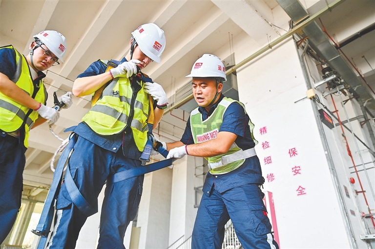 每次检修前,侯俊都要为班组成员整理全身式安全带,叮嘱安全事项。