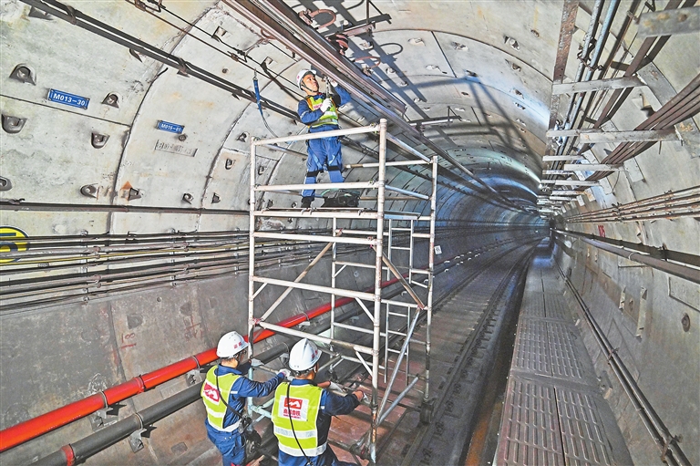 4月23日凌晨2时,在南昌地铁孔目湖站,侯俊如同“蜘蛛侠”般,在距离地面5米的空中进行隧道内接触网综合检修。