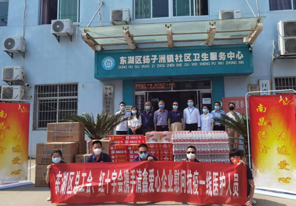 4月11日,东湖区总工会、区红十字会携手南昌清鑫商贸有限责任公司,走进东湖区扬子洲卫生院,为抗疫一线医护人员送来防疫物资,助力抗疫。