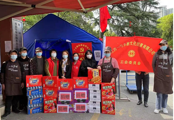 3月29日上午,江西一勺乡愁文化创意有限公司工会向丁公路街道金府社区卡点开展捐赠活动。