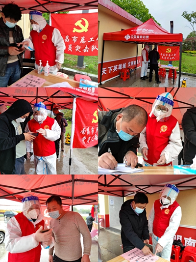 在新建区望城收费站卡点一线,市总党员突击队员分四班轮流完成24小时的值班值守任务。在值守中,他们协助做好大货车司机及随行人员的扫码测温、现场信息登记、核酸检测采样等工作。过往货车司机大多都为外地人员,申领“昌通码”时间较长,突击队员不仅要指导他们进行信息登记、查验健康码、帮助注册认证“昌通码”以及核酸检测等工作外,还要防止现场人员聚集过密。整整24小时,服务过关卡点人次高达592次。
