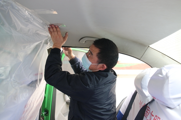 此外,为确保疫情防控工作安全有序推进,南昌市出租汽车有限公司为出租车辆安装了防护膜,配备了消毒水、口罩等防疫物资。