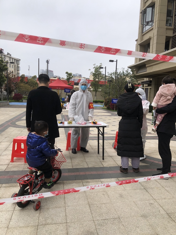 来到基层一线洪中社区,吴韶辉负责全员核酸检测现场维护工作。他一边宣传、引导广大居民及时做好核酸检测,一边维护现场秩序,确保核酸检测工作有序进行。