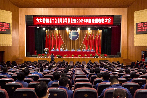 3月12日8时30分,方大特钢第十八届五次职工代表大会、第十六届五次工会会员代表大会暨2021年度先进表彰大会在公司文化中心隆重召开。