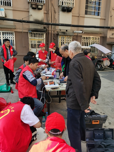 活动现场,志愿者们开展了绿色生态文明志愿服务,对楼道乱停乱放、户外垃圾广告等公共场所进行集中清理和整治,以实际行动维护人居环境、宣传垃圾分类、实践绿色低碳,践行“美丽中国,我是行动者”;围绕《江西省志愿服务条例》进行宣传,通过发放《条例》宣传册,传播志愿服务文化,营造人人知晓志愿服务、人人支持志愿服务、人人参与志愿服务的浓厚氛围;组织公益法律服务行动进社区,联合辖区派出所民警在超市、商店门口向群众发放反电信诈骗、平安南昌建设宣传材料,传授反诈骗小知识,针对借款、网贷骗局、劳动关系等问题进行法律援助,引导居民群众学法尊法守法用法。同时,积极开展科技进社区志愿服务活动,为居民群众提供家电免费维修、手机贴膜等志愿服务,成功“救活”大部分小家电,为多部手机换上“新衣”。