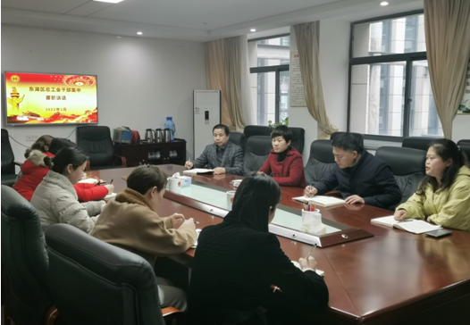 3月1日下午,东湖区总工会组织召开新任干部集体廉政谈话会。区人大常委会党组副书记、副主任,提名区总工会主席人选谭阿莉对5名新任干部进行了履职谈话。
