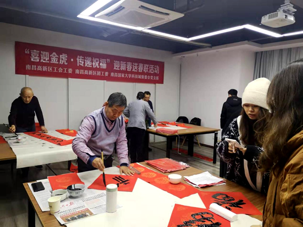 春节即将来临之际,为了营造浓厚的节日氛围,加强不同企业员工间的交流沟通,丰富园区职工文化生活,高新区工会工委分别在电子信息产业园职工之家和大学科技城举办迎新春送春联活动。