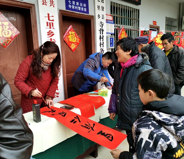 同日,市总工会还邀请了江西省书法协会书法家走进寺背村开展了“送万福、进万家”书法公益活动,共书写了200多副春联送到了村民们的手中。