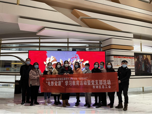 为深入开展党史学习教育活动,弘扬光荣传统,赓续红色血脉,1月10日下午,西湖区总工会组织全体干部职工在朝阳天虹华夏影城观看红色教育电影《跨过鸭绿江》。
