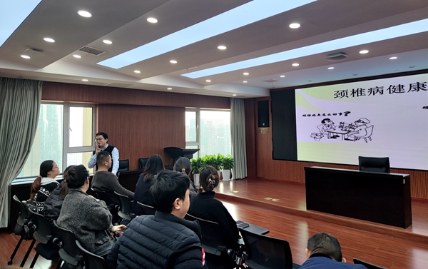 12月9日,赣昌砂石公司工会组织开展颈椎病健康教育讲座。活动特邀江西省针灸医学临床研究中心主任、南昌市灸疗中心主任、南昌市洪都中医院针灸科主任胡秀武前来授课,30余名职工参加讲座。