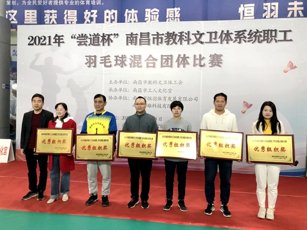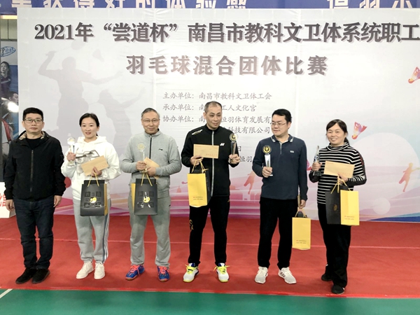 近日,由南昌市教科文卫体工会主办,市工人文化宫承办的2021年南昌市教科文卫体系统职工羽毛球混合团体比赛在南昌市工人文化宫文体中心圆满落幕。市总党组成员、市教科文卫体工会主席钟东出席颁奖仪式并为获奖队伍颁奖。