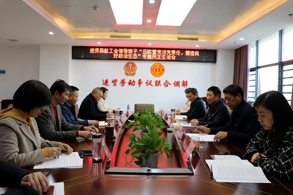11月10日下午,进贤县总工会召开“压实管党治党责任 营造良好政治生态”专题民主生活会。县人大常委会二级调研员,县总工会党组书记、主席焦官印主持会议并作总结讲话。县委党史学习教育第一巡回督导组组长罗小敏一行到会指导。