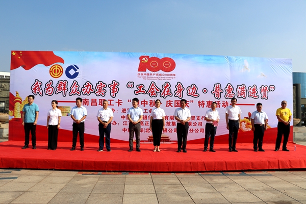初秋九月,丹桂飘香。在中秋、国庆双节来临之际,9月17日上午,进贤县总工会在县政府广场举办我为群众办实事“工会在身边·普惠满进贤”南昌职工卡“迎中秋·庆国庆”特惠活动。县委副书记邹敏琴宣布活动开始,县人大常委会副主任、县总工会主席焦官印讲话,县总工会常务副主席曾志华主持活动。
