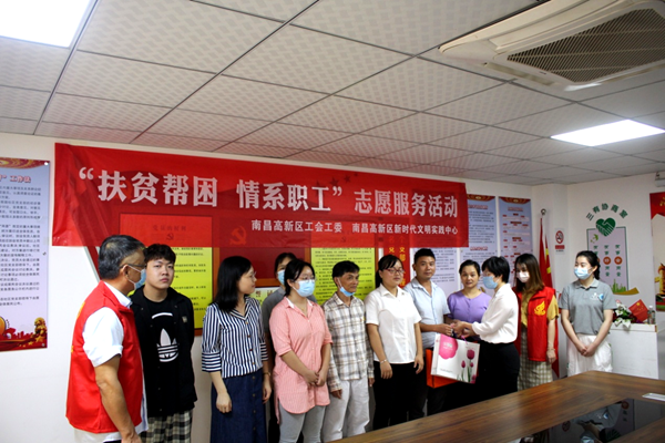 9月15日,南昌高新区工会工委联合绿地华邑酒店开展为社区工作人员及困难职工送温暖活动,区工会工委主任张诗超参加。