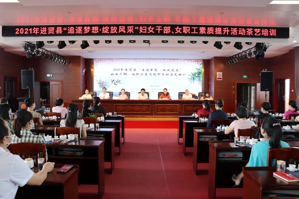 为深入实施“我为群众办实事”和“女职工提素建功”工程,积极回应妇女干部和女职工们对提升素质的向往和需求,8月28日上午,县总工会联合县妇联在工人文化宫16楼开展2021年进贤县“追逐梦想·绽放风采”妇女干部、女职工素质提升活动茶艺培训。参加茶艺培训的40名学员为我县的妇女干部、女职工及广大女性茶艺爱好者。县人大常委会副主任、县总工会主席焦官印出席开班仪式并讲话。