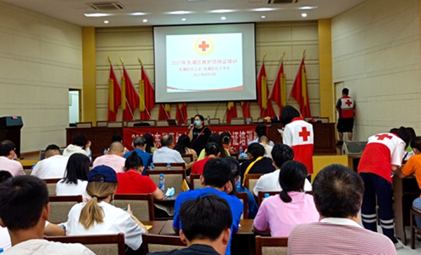 8月3日,东湖区总工会联合区红十字会,在扬子洲镇会议室举办应急救护培训班,主要学习突发事件中的急救知识和技能。扬子洲镇职工群众近百人参加。