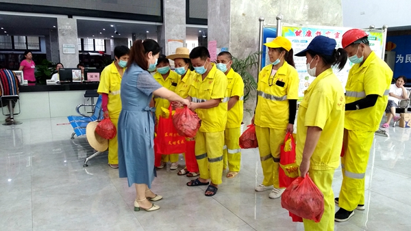 8月4日下午,东湖区总工会给户外劳动者送清凉,分别走访了区墩子塘街道、区豫章街道、区公安分局和蜂鸟饿了么站点,给环卫工人、执法工作人员和快递外卖小哥们送上绿豆、冰糖、木耳、莲子等消暑降温物品。