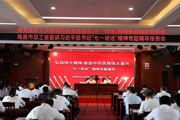 为庆祝中国共产党成立100周年,深入学习贯彻习近平新时代中国特色社会主义思想,在全县职工中广泛营造“学党史、悟思想、办实事、开新局”的浓厚氛围,推动我县党史学习教育务求实效、走在前列。7月30日,进贤县总工会开展习近平总书记“七一讲话”精神专题辅导报告会,南昌市总工会副主席陈水平宣讲,县总工会常务副主席曾志华主持。