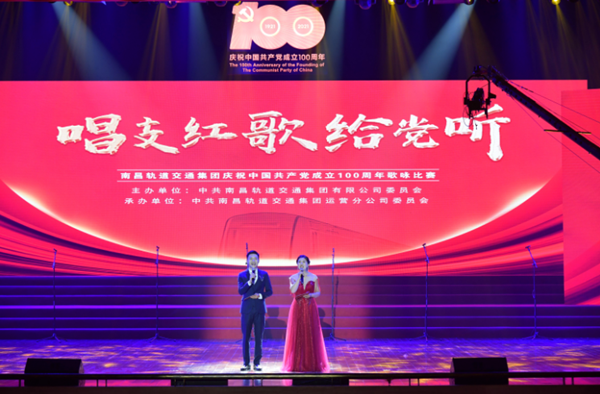 为热烈庆祝中国共产党成立100周年,回顾党的光辉历程、讴歌党的丰功伟绩,传承红色基因,进一步激发集团基层党组织和党员干部的活力,6月23日晚,南昌轨道交通集团在红谷滩会议中心隆重举办庆祝中国共产党成立100周年——“唱支红歌给党听”歌咏比赛。集团领导班子全体成员,以及集团基层党组织14支参赛队伍、党员干部职工近千人汇聚一堂,以声传情,抒发对党的热爱,礼赞新时代。