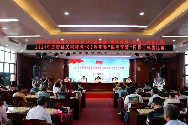 为进一步丰富职工业余文化生活,展现我县棋类竞技比赛风采,近日,2021年进贤县庆祝建党100周年暨 “国宝李渡”杯职工棋类比赛在县工人文化宫16楼开赛。县人大常委会副主任、县总工会主席焦官印,县总工会常务副主席曾志华,县总工会副主席陶表平,县棋类协会名誉主席梁发水,江西李渡酒业销售有限公司进贤区域经理兼云商部总经理黄锋军等领导和嘉宾出席开幕仪式。来自全县的90余名棋类爱好者参加本次比赛。