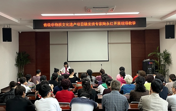 赣发绣都是省级非物质文化遗产,有着重要的历史及文化价值。为了保护传承我区非物质文化遗产名录,东湖区文化馆邀请了省级非物质文化遗产项目赣发绣传承人陶永红现场教市民家居刺绣入门技艺,让更多的市民提升了非遗保护意识。同时,为了激励引导专业人才发挥专长,施展才华,区文化馆还邀请了毛线钩织和朗诵方面的专业人才,给市民进行专门公益教学,教学针对大众需求,开设了《生活中简易毛线钩织运用》、《朗诵技巧入门》课程,效果良好。