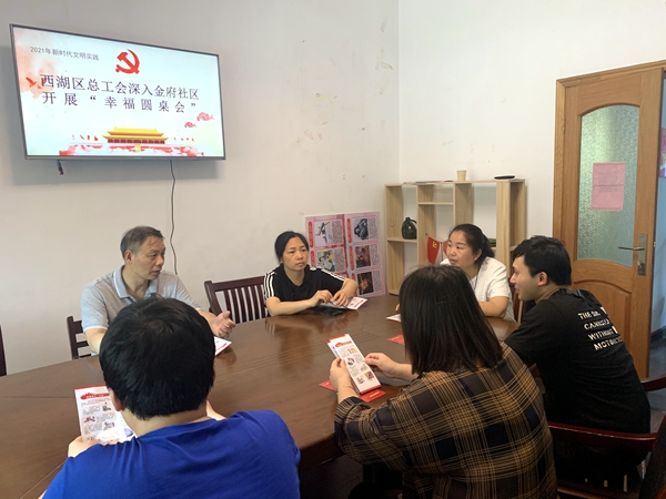 为扎实开展党史学习教育,进一步推进“转作风优环境”活动年“三认”行动走深走实,5月15日,西湖区总工会一行深入丁公路街道金府社区开展“我为群众办实事”幸福圆桌会及文明创建和巩固卫生城综合整治活动。