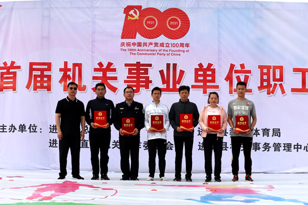 为热烈庆祝党的百年华诞,贯彻《全民健身条例》和“健康中国2030”全民健身国家战略,凝聚彰显省会担当、建设社会主义现代化进贤的磅礴力量,4月17日,2021年进贤县庆祝建党100周年暨首届机关事业单位职工运动会在县政府人民广场隆重举行。