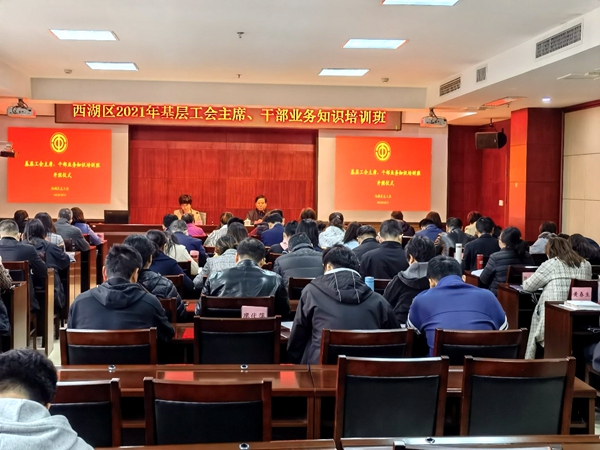 因基层工会干部换动频繁,工会基础知识薄弱,为进一步夯实基层工会业务工作基础,有效提高业务知识水平和创新能力,西湖区总工会围绕“转作风 优环境”活动年工作方案,4月7日上午,西湖区总工会2021年基层工会主席、干部业务知识培训班在省干部学院举行开班仪式,此次培训班将为期三天,共80名学员参与。