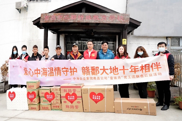 3月4日上午,为了进一步弘扬雷锋精神和“奉献、友爱、互助、进步”的志愿精神,中海集团南昌公司党支部、工会、团支部联合前往“南昌公司学雷锋青年志愿服务基地”——南昌市三联特殊教育学校开展学雷锋青年志愿服务主题公益活动。南昌公司党支部书记杨栋同志、团支部书记刘帆同志,以及党工团志愿者代表参加本次活动。