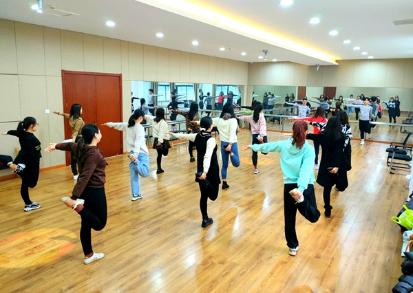 首先安排的活动是学练健身操,活动伊始,部分学员存在“同手同脚”、“踩不住音乐节拍”等情况。在专业教练的指导下,学员们逐渐掌握了舞蹈要领,通过调节身体节奏和呼吸方式等,手脚协调性慢慢的得到了提高,动作也越来越娴熟,在欢快的音乐、动感的节奏中尽情舞动。