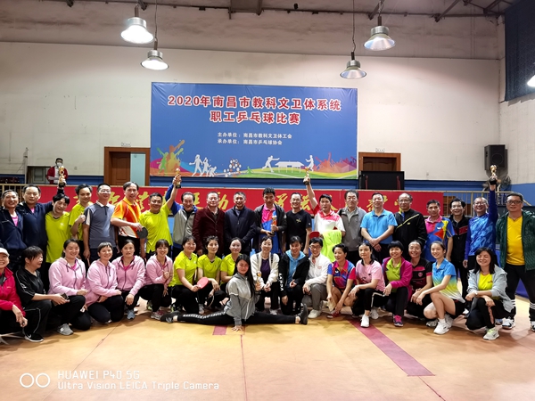 由南昌市教科文卫体工会主办,市乒乓球协会、市工人文化宫承办的2020年南昌市教科文卫体系统职工乒乓球、羽毛球比赛分别于11月1日、11月8日在江西火电俱乐部、工人文化宫文体中心圆满落幕。市总党组成员、市教科文卫体工会主席钟东出席并为获奖选手颁奖。