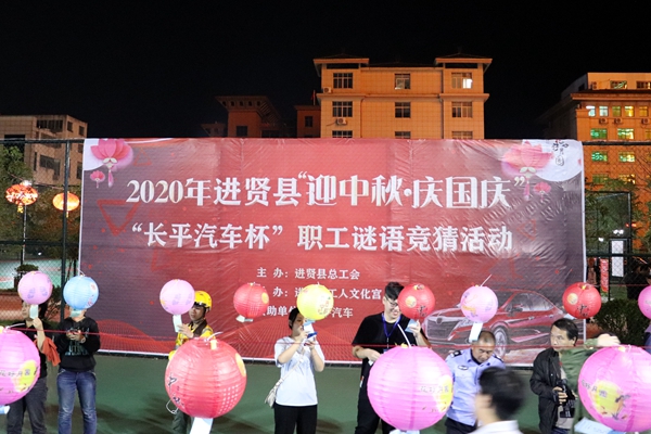 为进一步弘扬中华民族优秀传统文化,丰富职工节假日生活,活跃传统节日氛围,9月30日晚上,进贤县总工会举办了我们的节日—迎中秋·庆国庆“长平汽车杯”职工谜语竞猜活动,为职工带来了一场丰富多彩的精神文化盛宴。