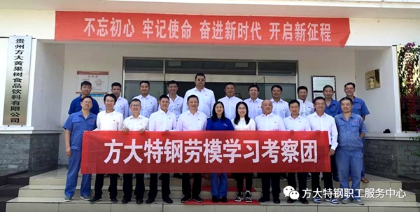 为进一步弘扬劳模工匠精神,营造关心劳模、尊重劳模的社会氛围,8月30日方大特钢工会组织2019年度劳模、标兵一行16人赴贵州方大黄果树学习考察。方大黄果树相关负责同志对公司劳模、标兵学习考察团的到来表示热烈欢迎,并介绍了贵州方大黄果树从成立以来,公司积极拓展经营思路,依托当地优质水资源生产富含微量元素矿物质的优质天然矿泉水,通过近年来的不断发展,黄果树矿泉水已具有较好的知名度和品牌影响力。